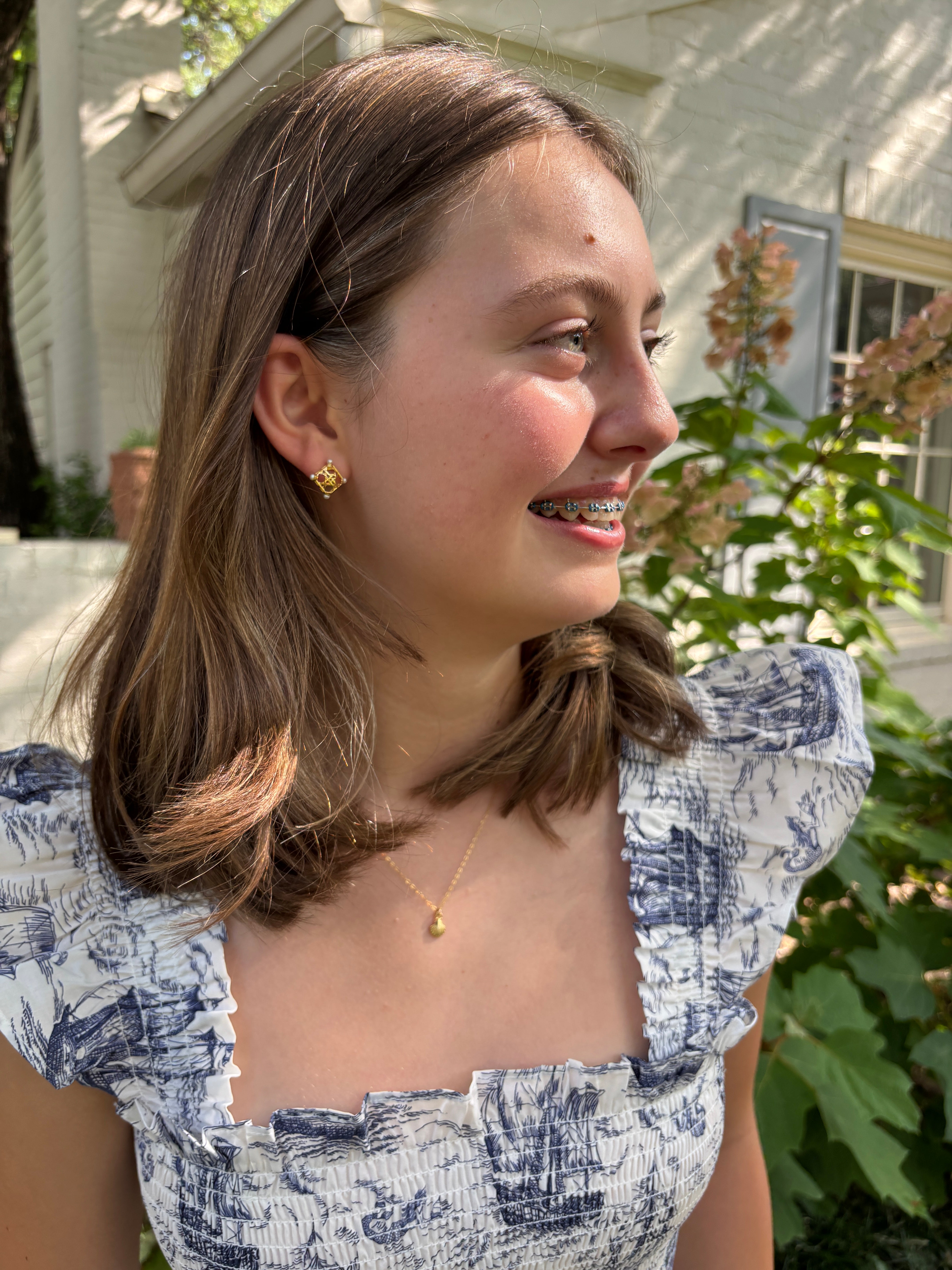 Catherine Gold Basketweave & Aqua Quartz Earrings