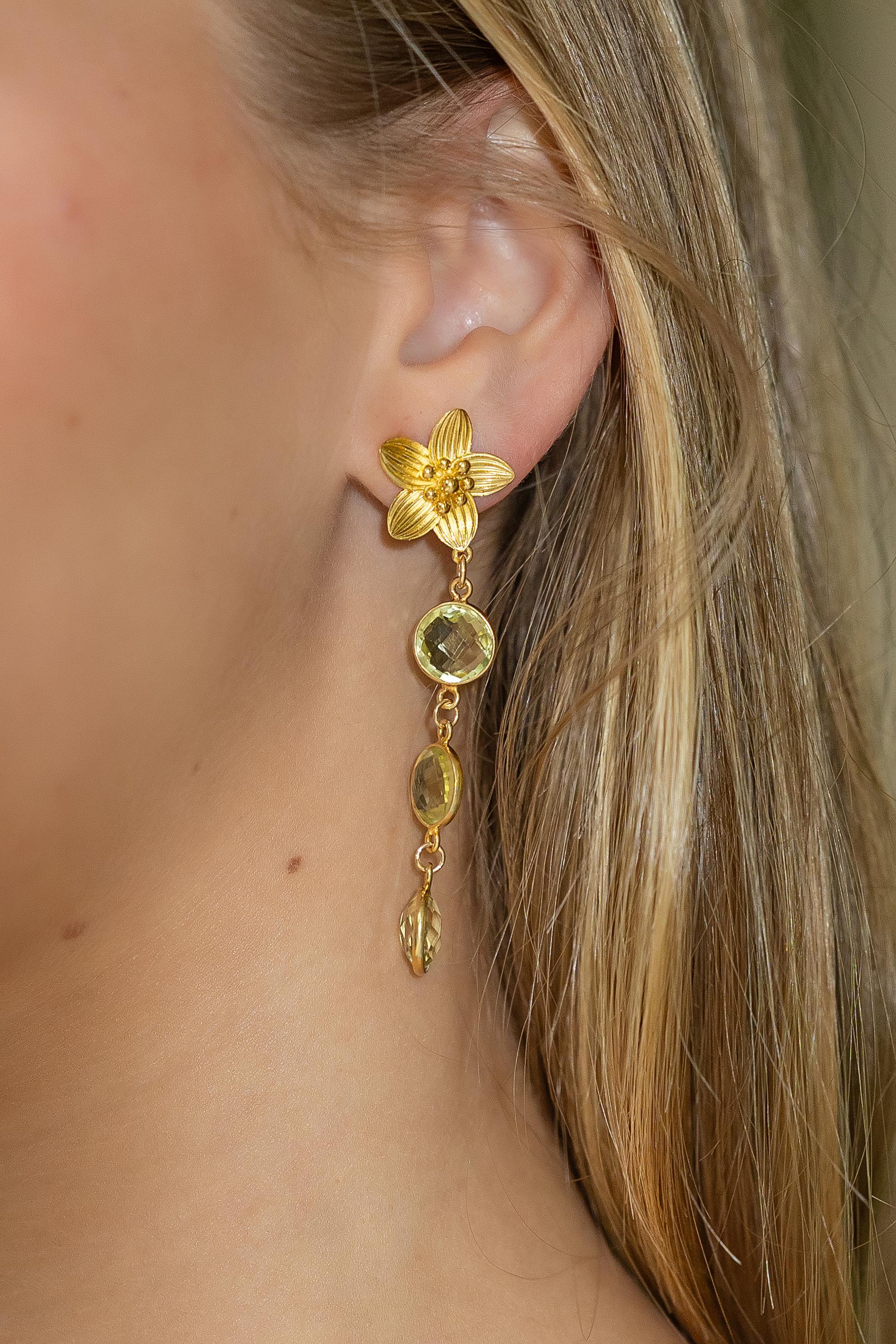 Gold floral posts coupled with lemon quartz lend a whimsical flair to a timeless design with these earrings. They are perfect for any season and a natural choice for all occasions!